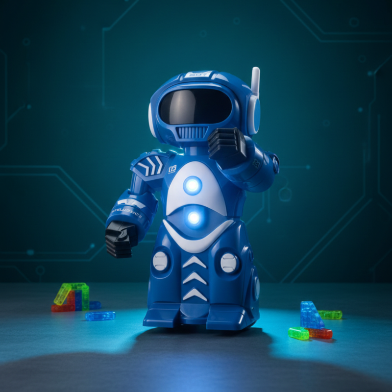 - ইন্টেলিজেন্ট ফাংশন: রোবটের গায়ে লেখা 'INTELLIGENCE' এর ইঙ্গিত, যা এর প্রোগ্রামড অ্যাকশন এবং সাউন্ড ইফেক্টকে বোঝায়।